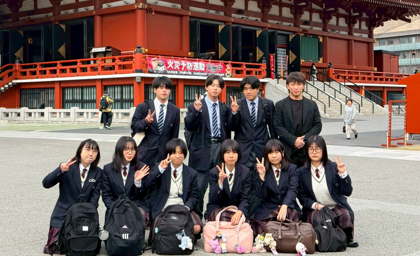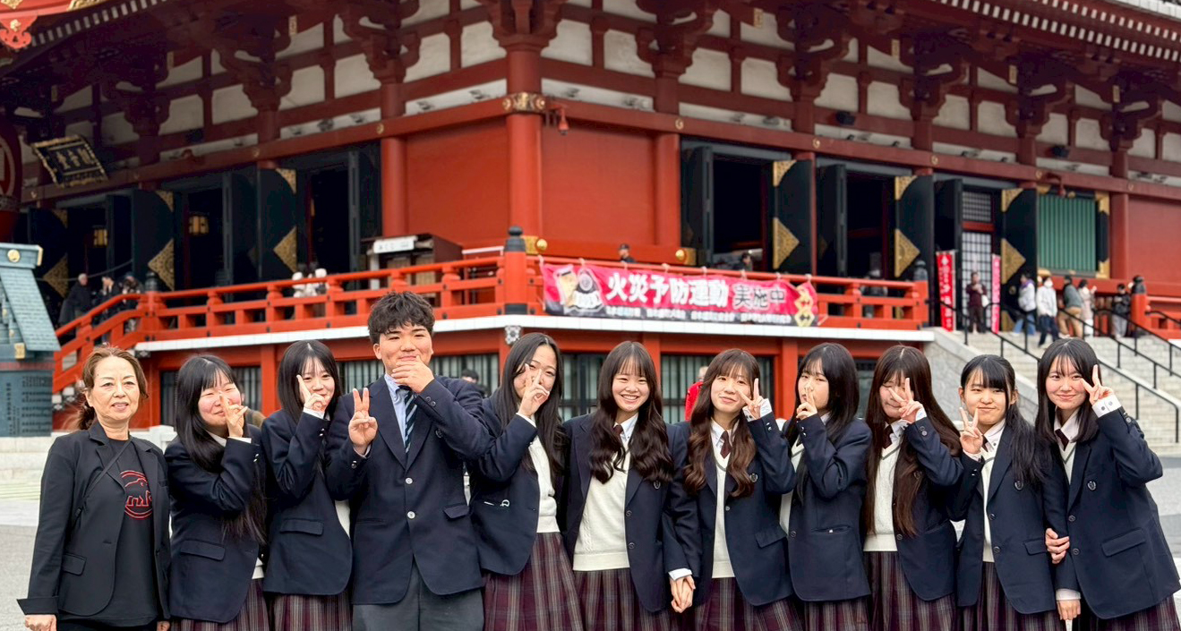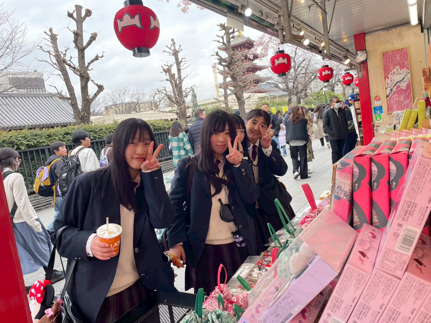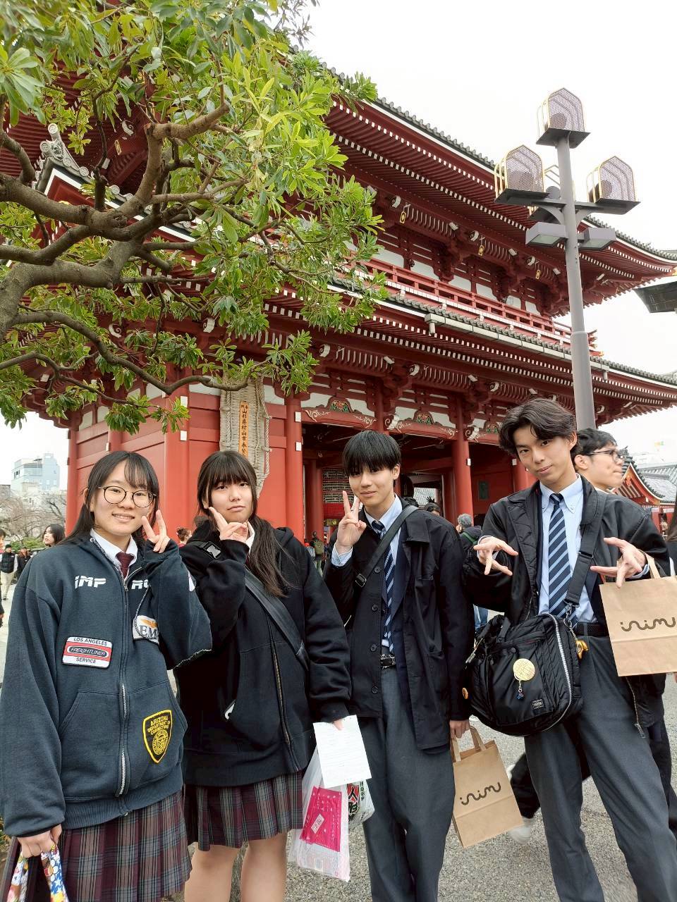 最終日、関東コースは浅草、北海道コースは北海道場外市場の散策です。その後は空港へ移動し本校へ帰校します。