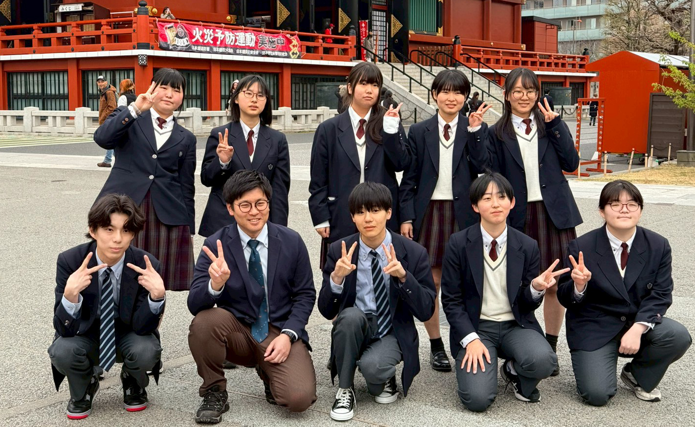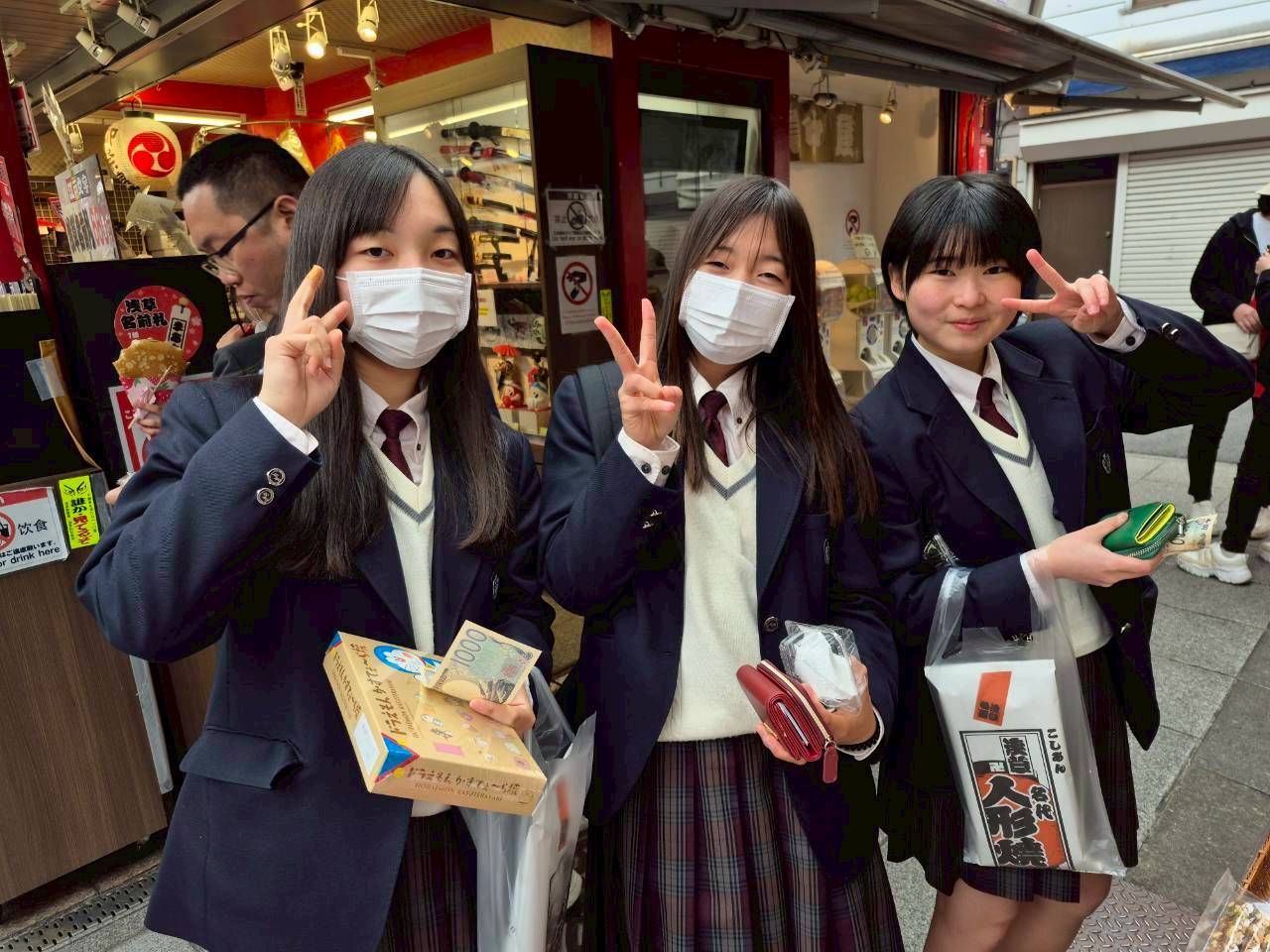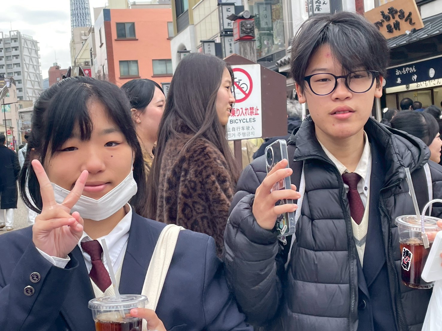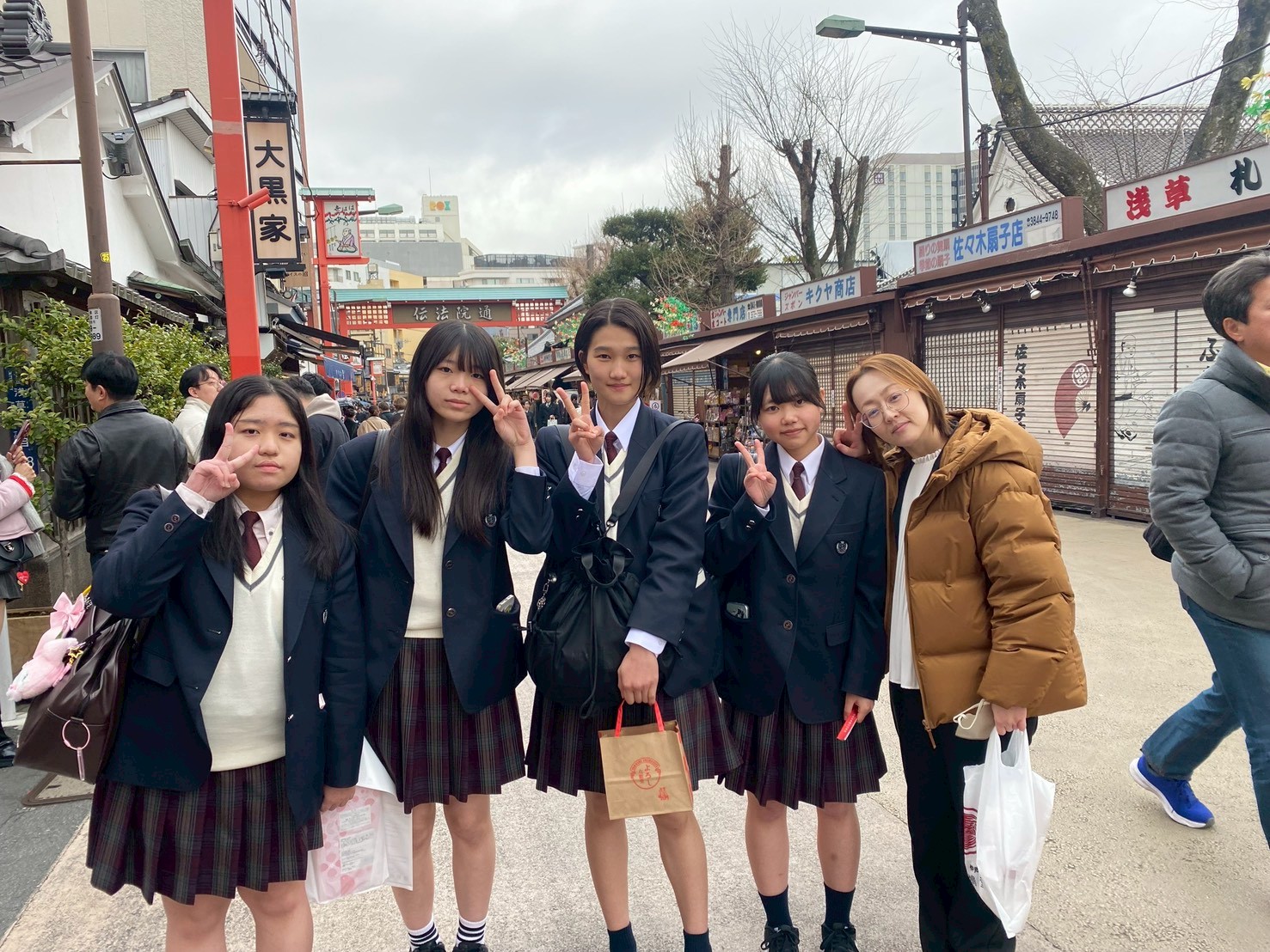 最終日、関東コースは浅草、北海道コースは北海道場外市場の散策です。その後は空港へ移動し本校へ帰校します。