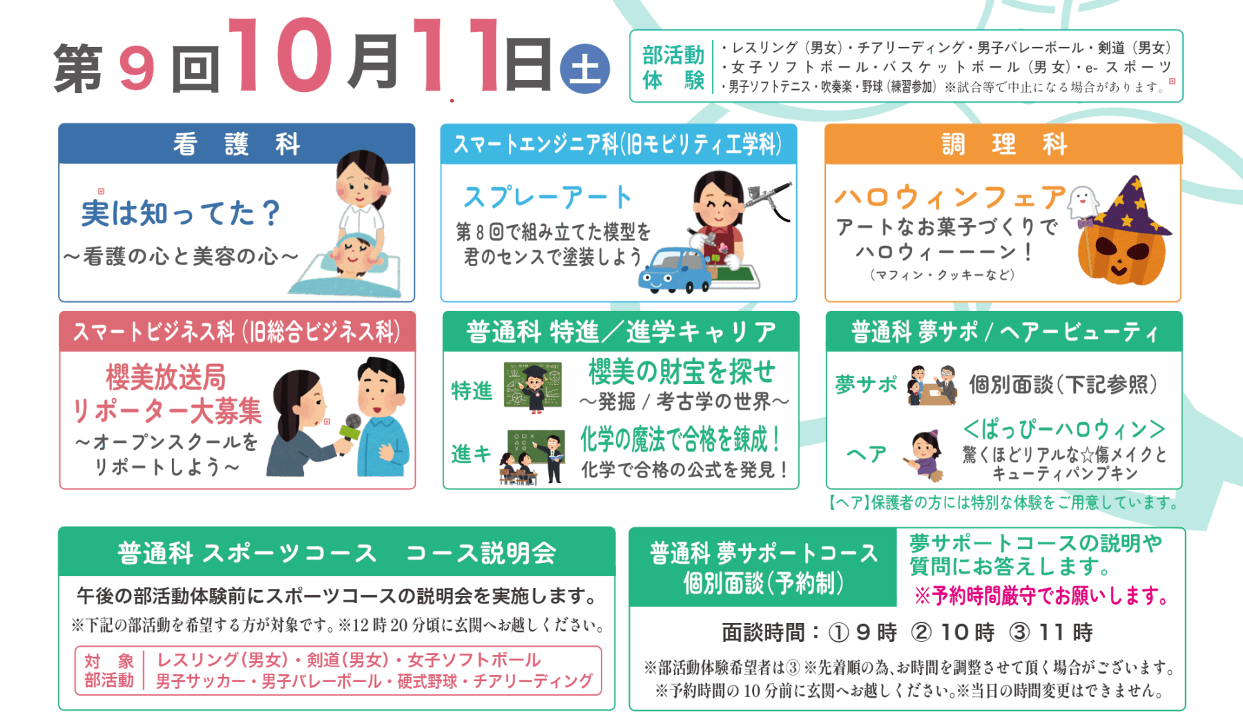・学科・部活動両方のご参加を希望の方は、各自で昼食の準備をお願いします。